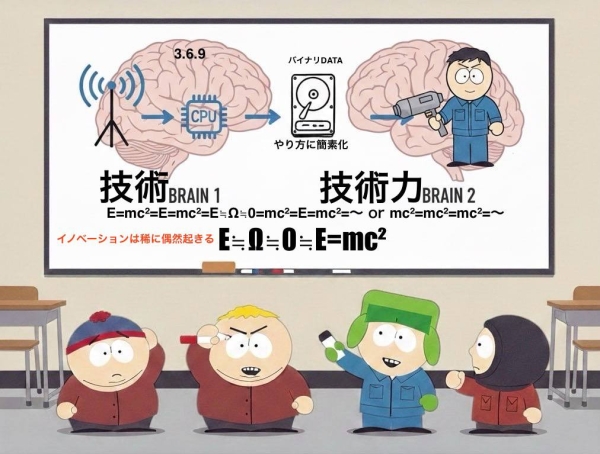 「なぜそうなったか」「どうすればどうなるか」を生涯目指すのが技術です。<=E≒Ω≒0=mc²=E>日常はE=mc²の繰り返し。時折Ω≒0が創造される事があります。0から1にするための0の創造