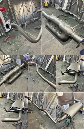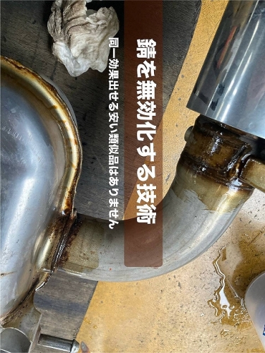 マフラーについては、最初のジョイント部分から外して温度が高い部分と出口の低い部分を最善の化学反応で処理し全体を保護塗装します。